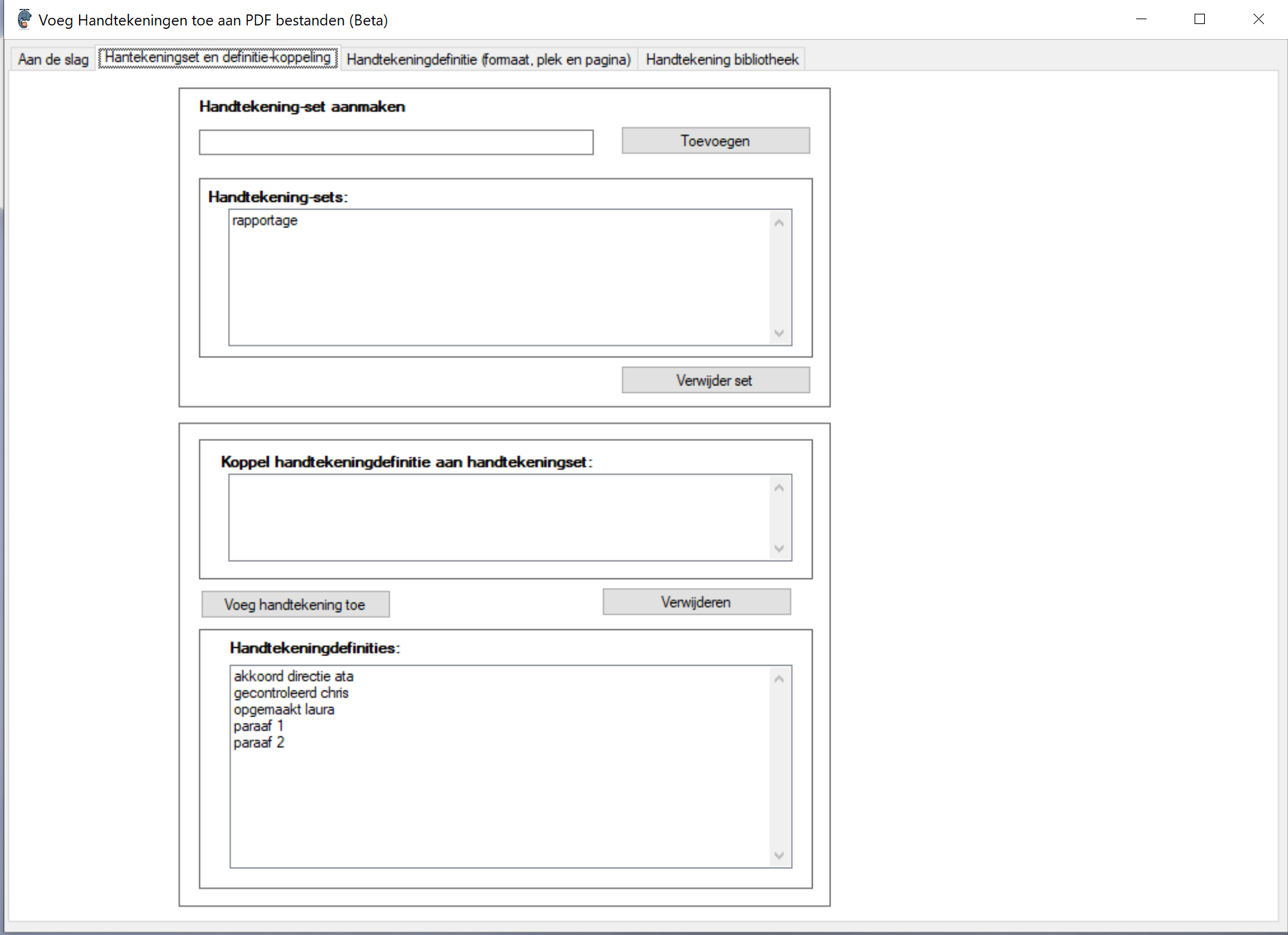 Stap 3 – Handtekeningset en definitie-koppeling